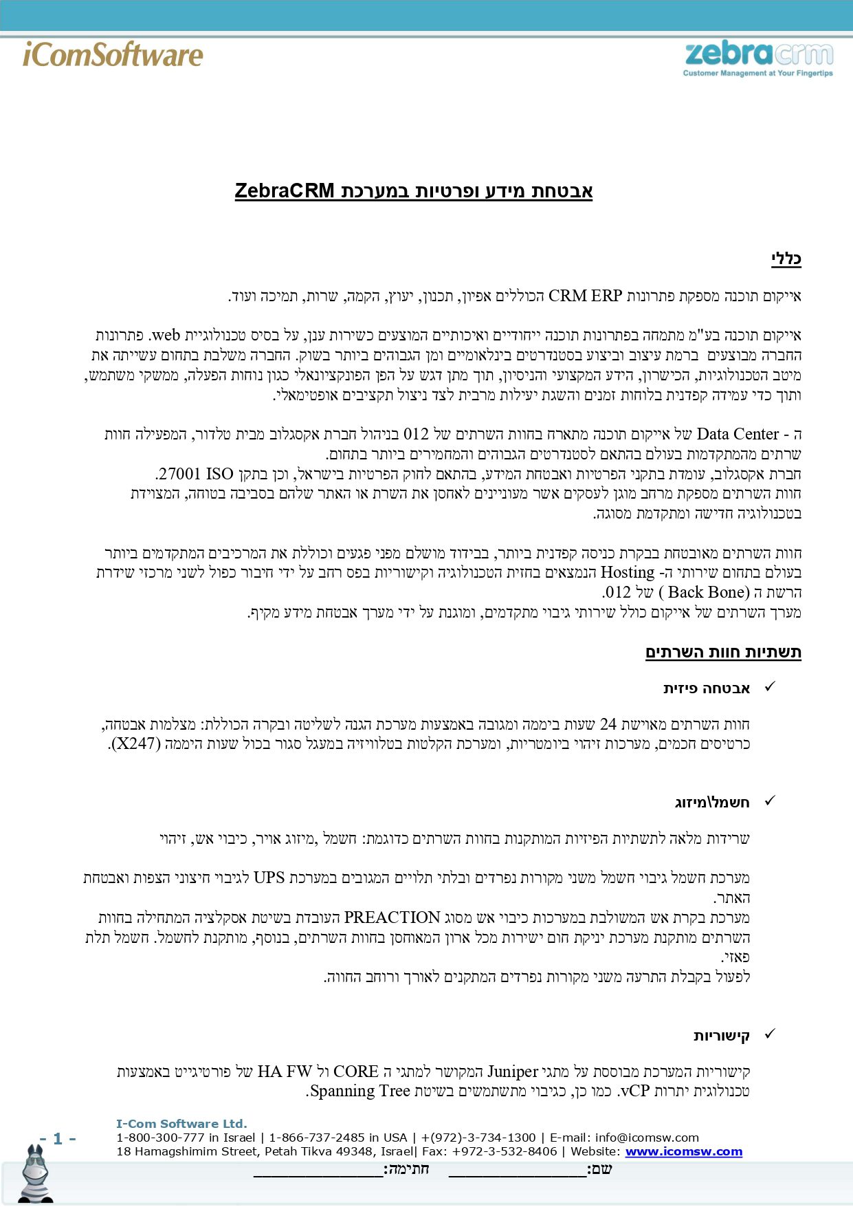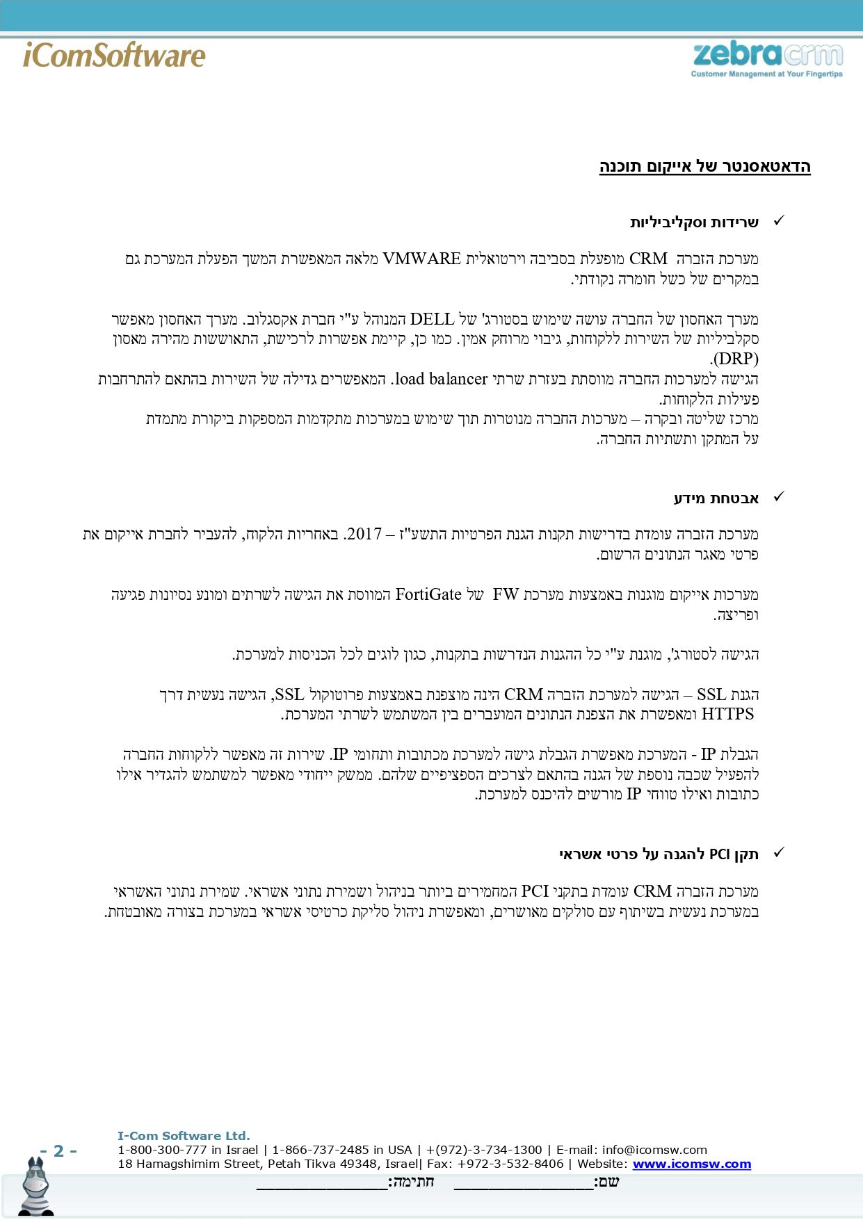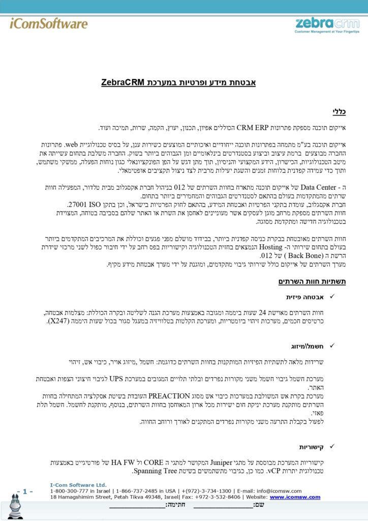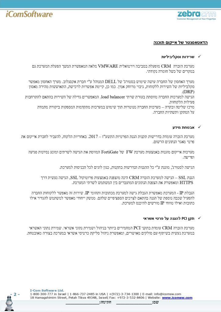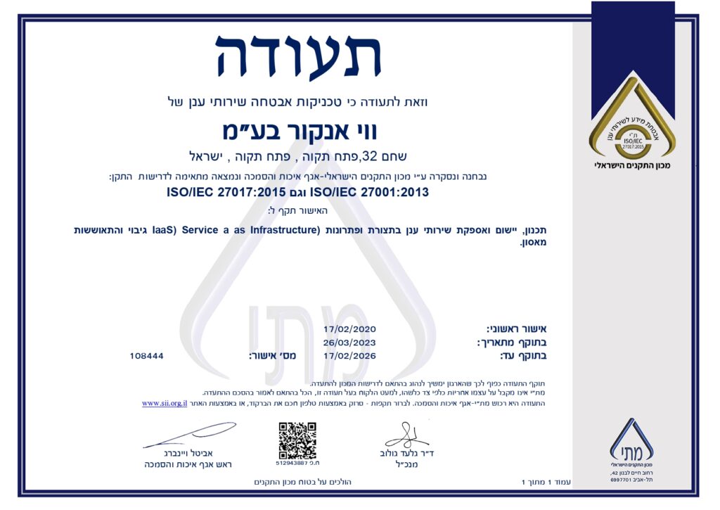אבטחת מידע אתר החברה משתמש במנגנוני הגנה כדי לאבטח את המידע באמצעות טכניקות אבטחה של שירותי ענן של ווי אנקור בע"מ ומערכת אבטחה של ZebraCRM ואלו נועדו לצמצם את הסיכונים לחדירה בלתי מורשית למאגר המידע. עם זאת, מנגנוני האבטחה אינם יכולים להעניק חסינות באופן מוחלט מגישה בלתי מורשית ושימוש לרעה במידע. בשימוש ורכישה באתר את/ה מצהיר/ה כי לא תהא לך כל דרישה ו/או תביעה נגד החברה ו/או מי מטעמה בגין פריצות ו/או חדירות לאתר ובלבד שהאמור לא היה בשליטת החברה והיא נקטה במאמצים סבירים למנוע זאת. לצפייה באישור מכון התקנים לטכניקות האבטחה של חברת ווי אנקור בע"מ לחץ כאן. לצפייה באבטחת מידע ופרטיות במערכת ZebraCRM לחץ כאן.